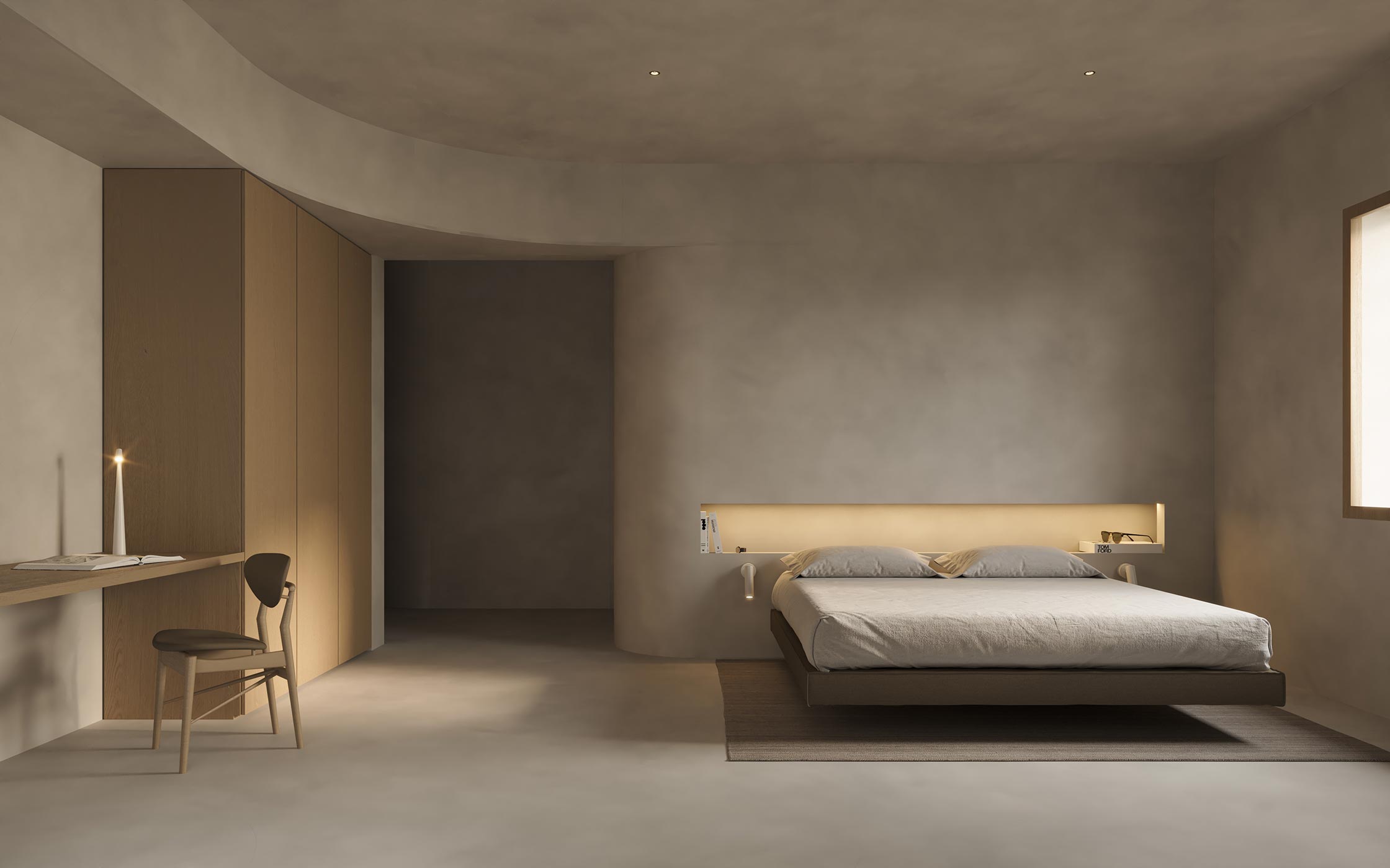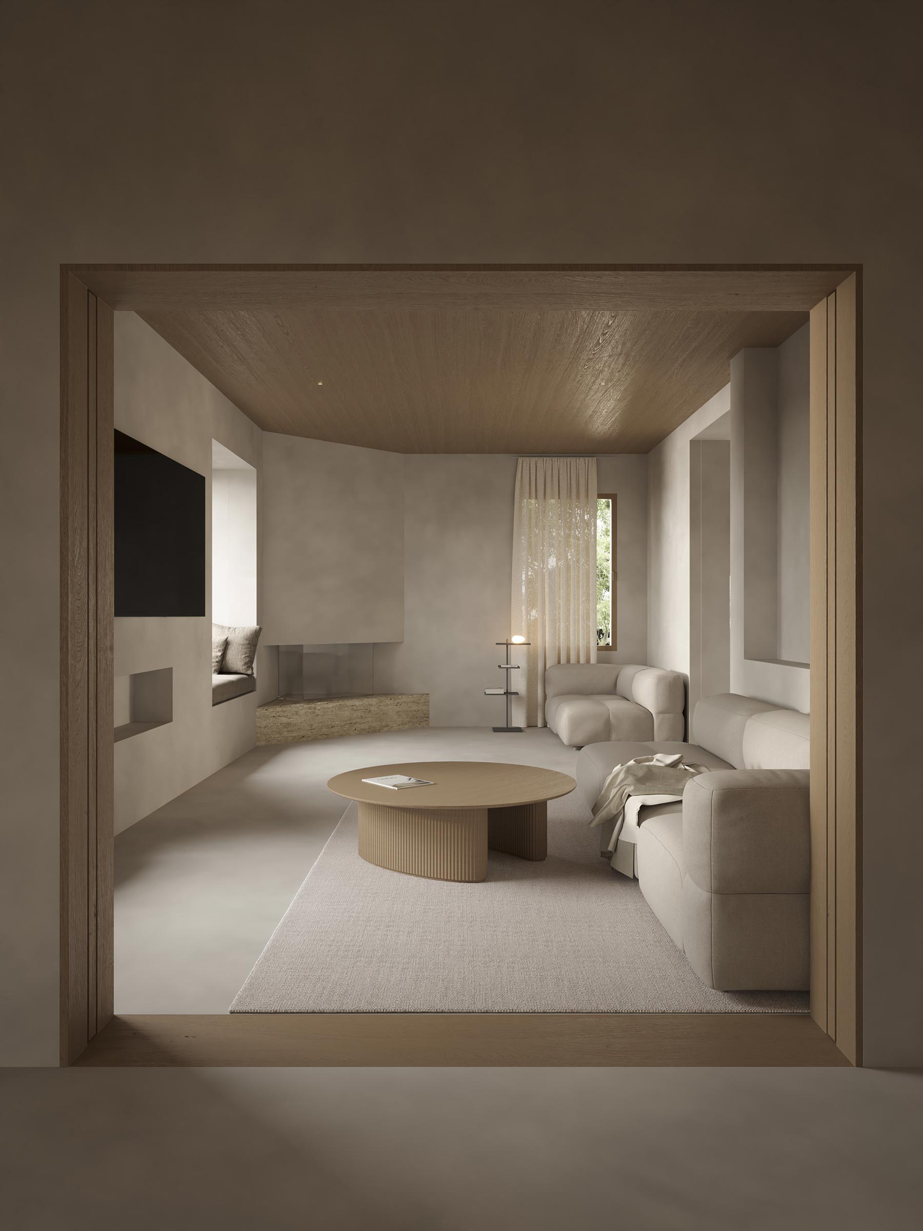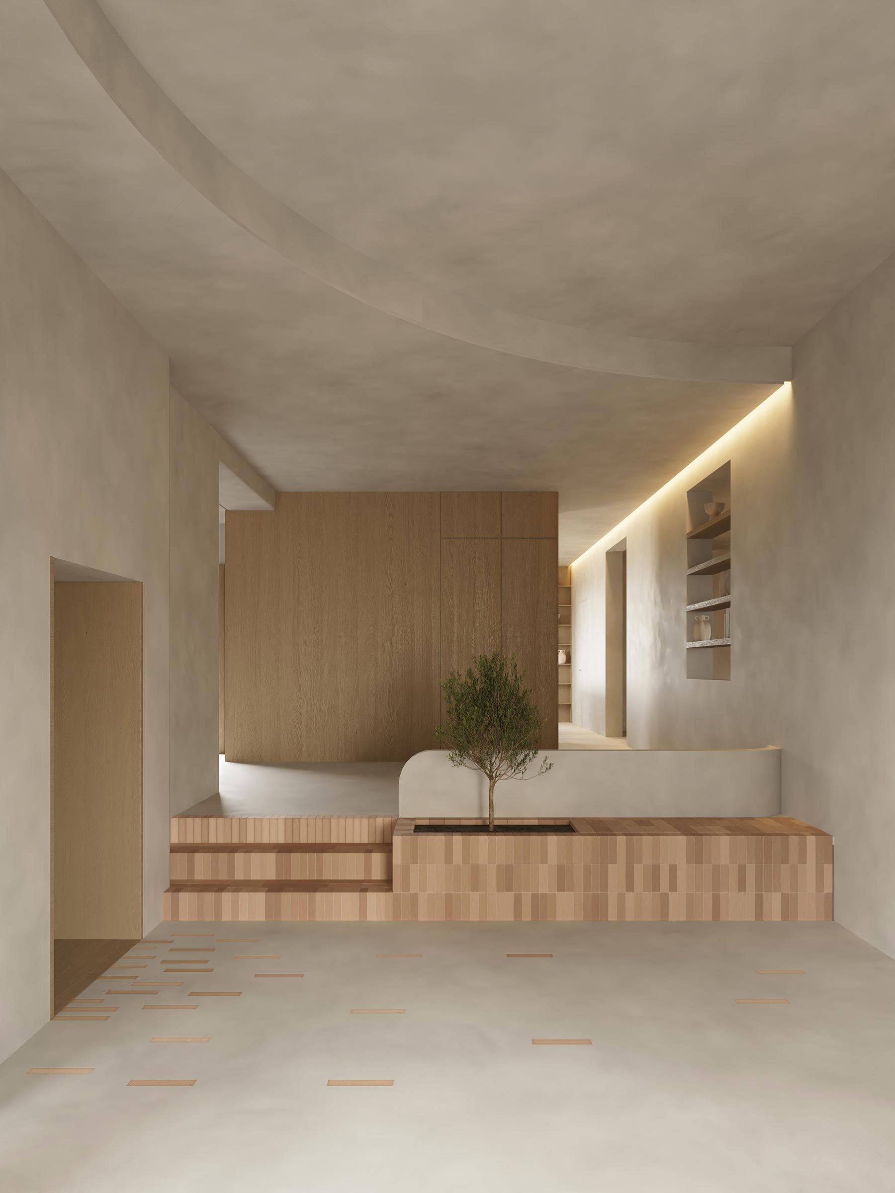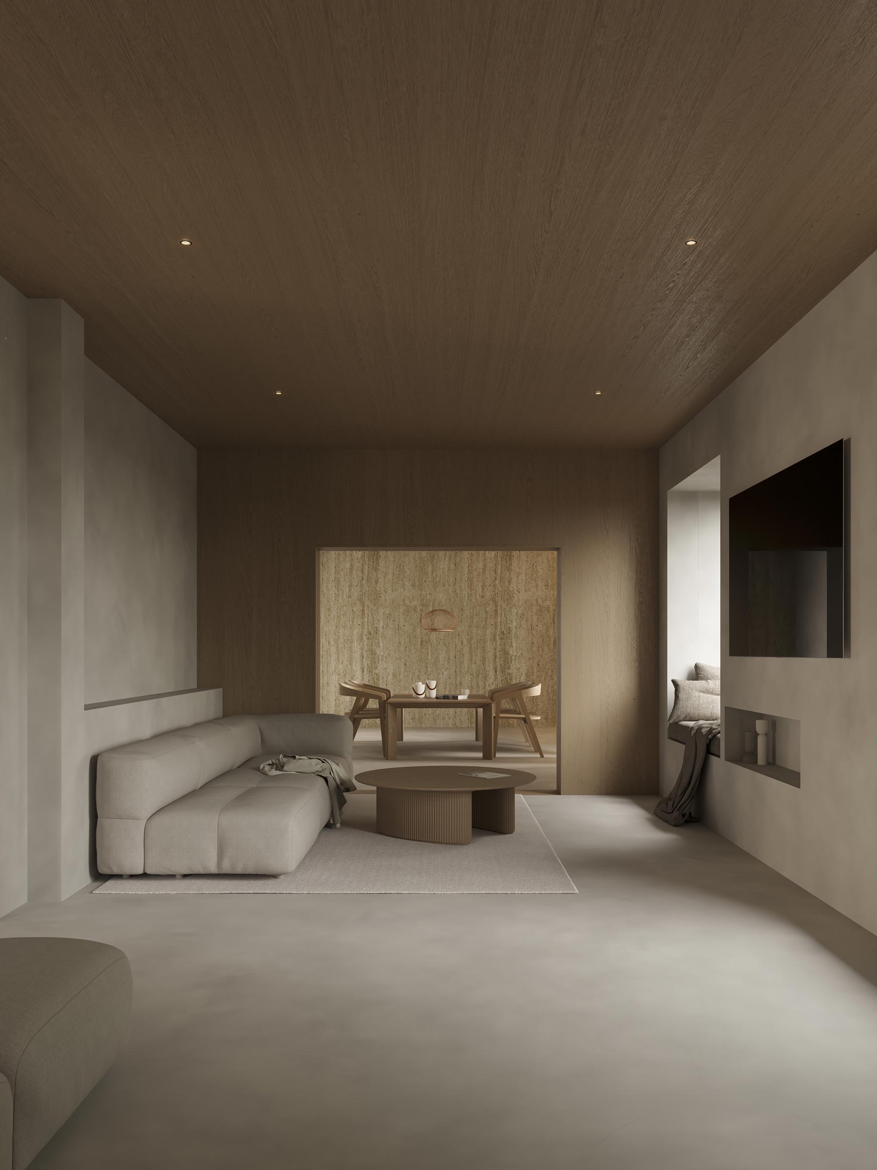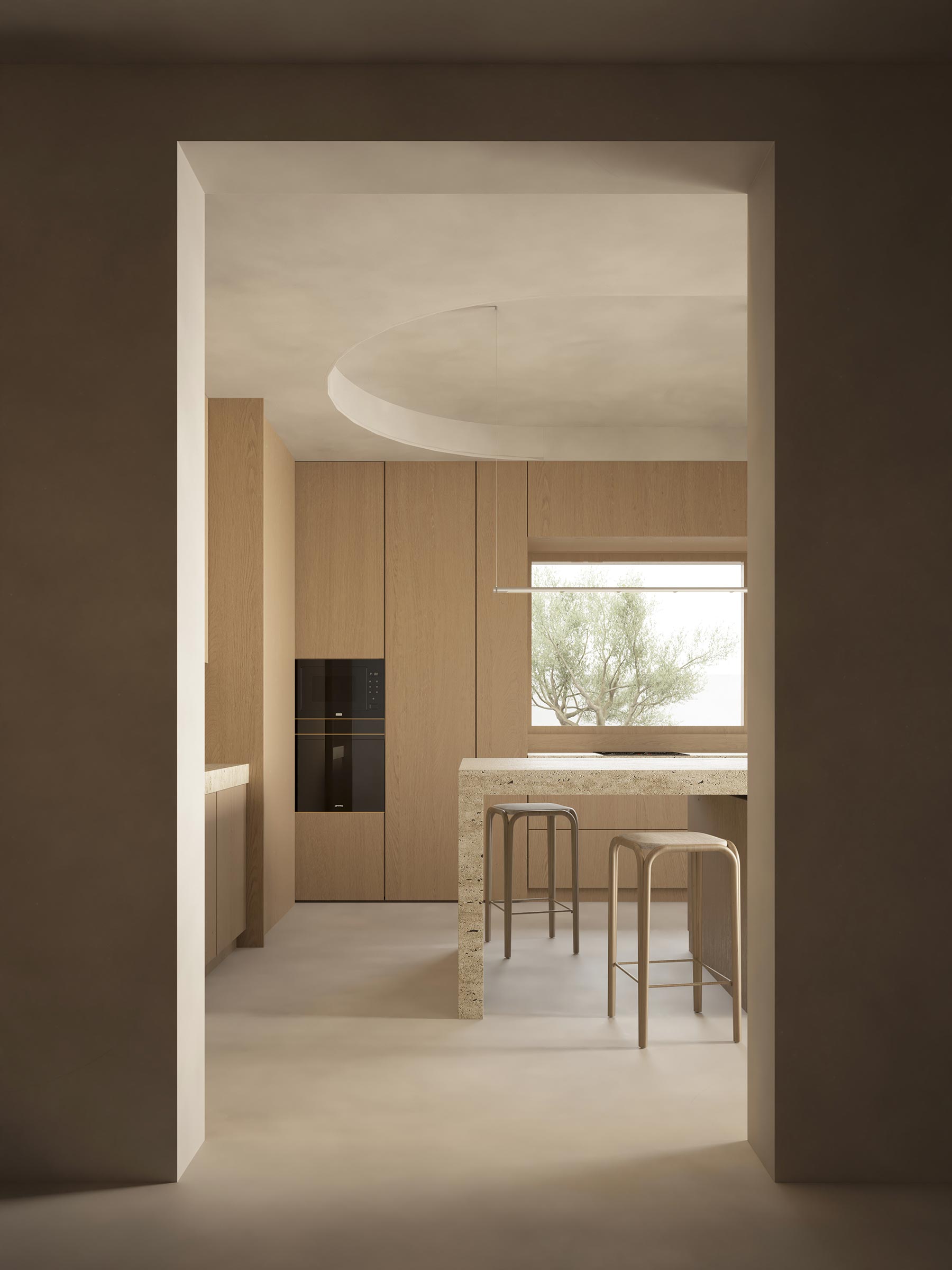 Se utilizan siempre materiales naturales de proximidad. Los elementos principales del proyecto son la madera de roble natural, el travertino, la terracota manual y el uso de un pavimento continuo.