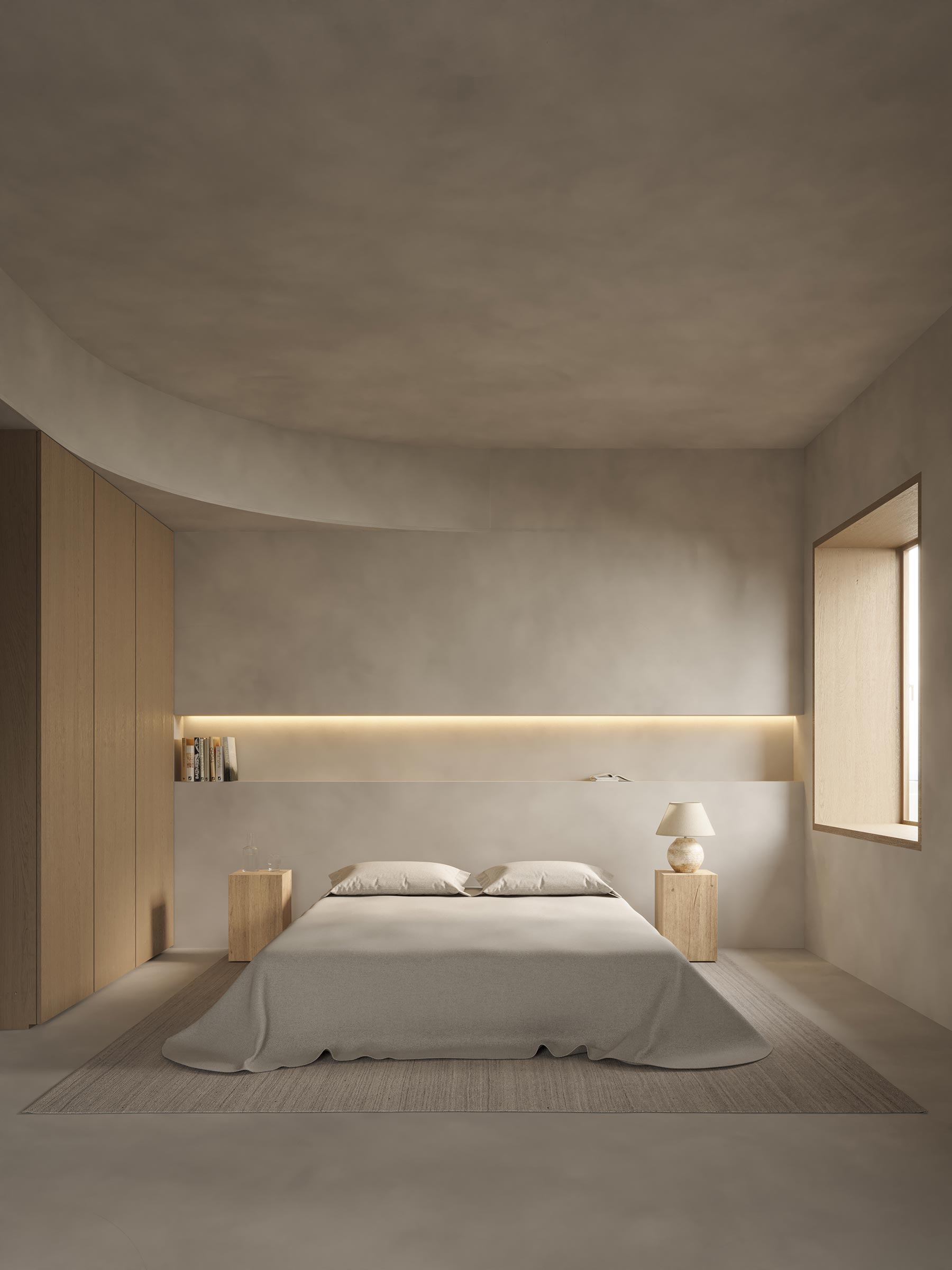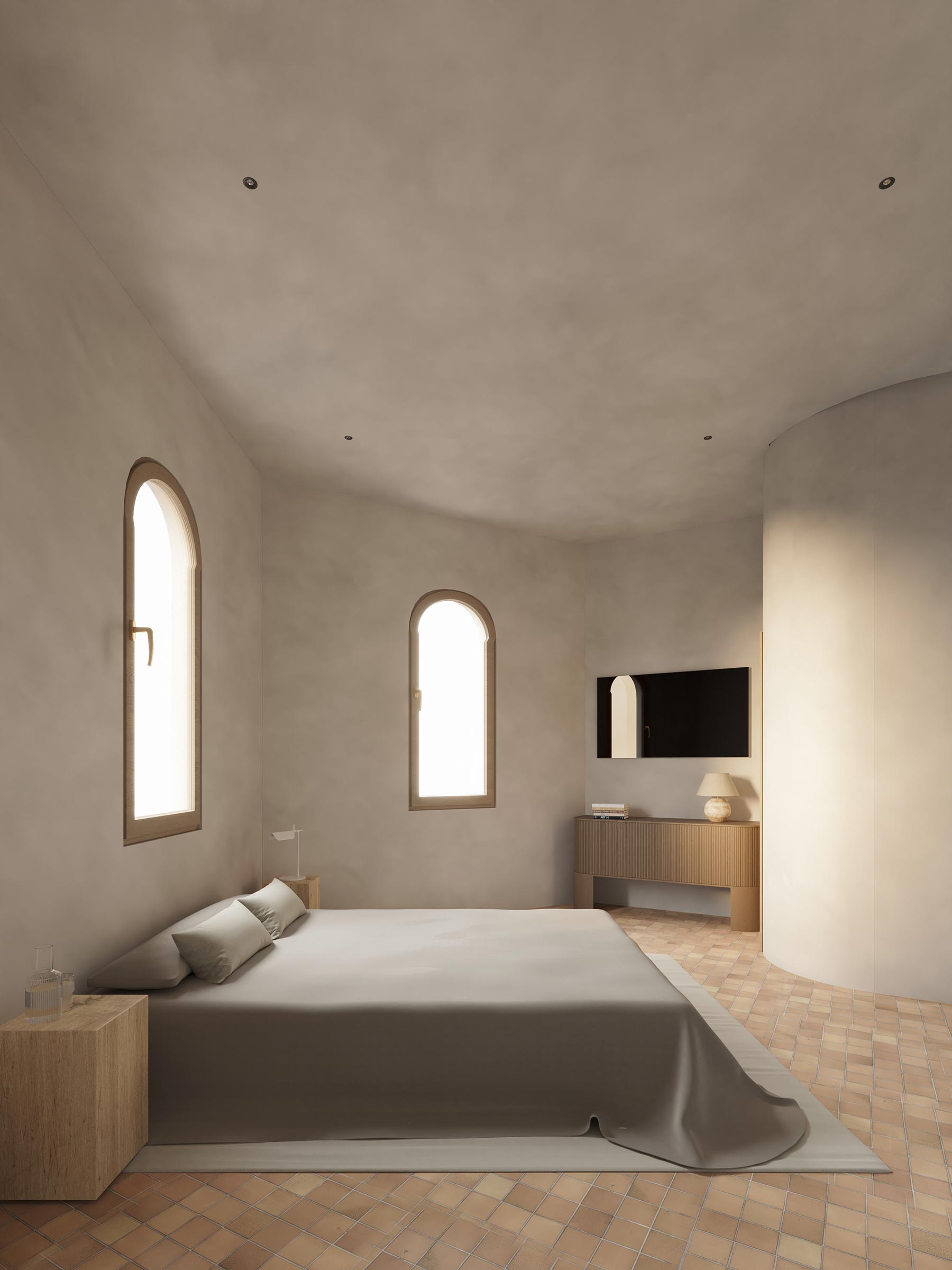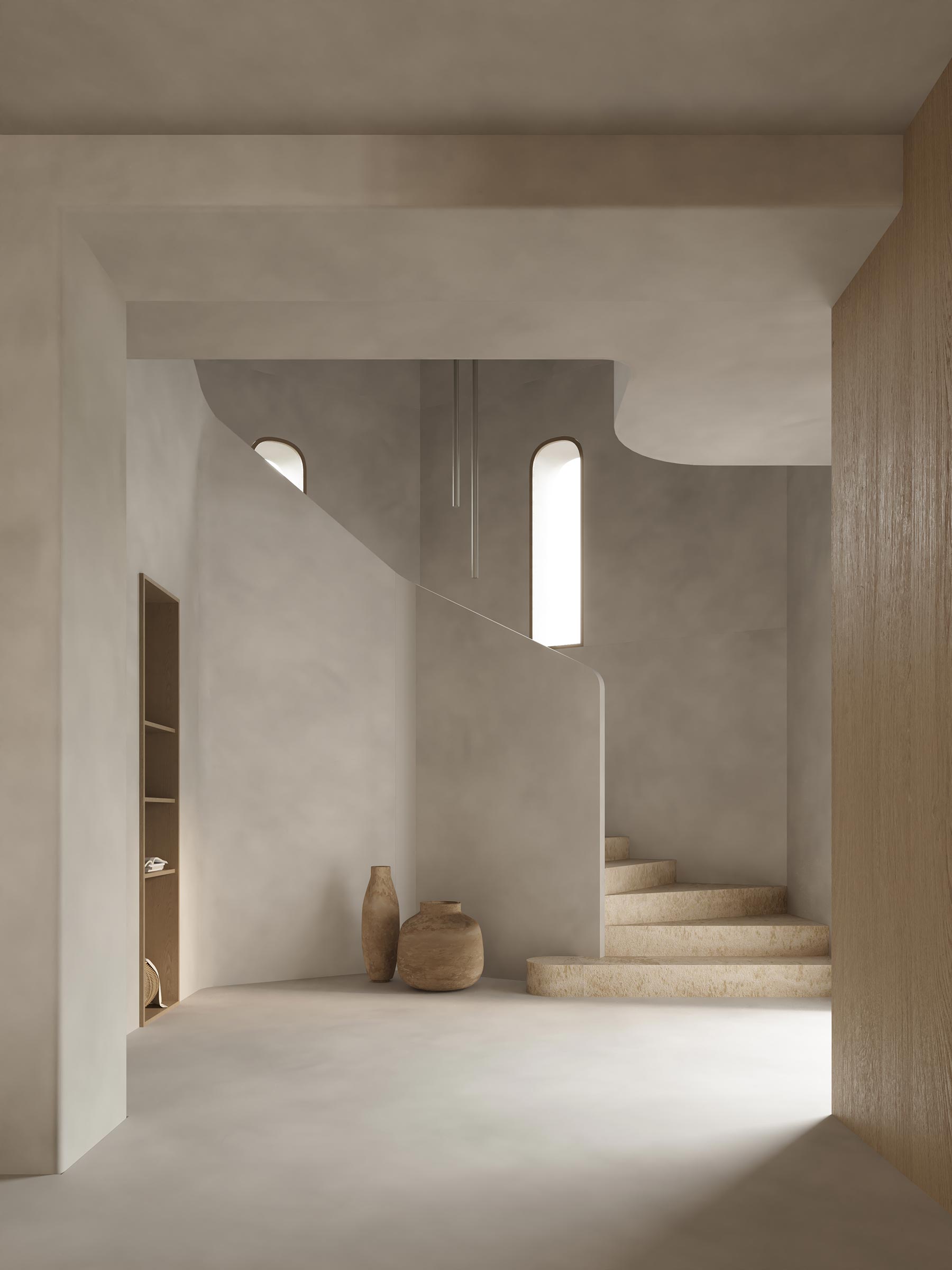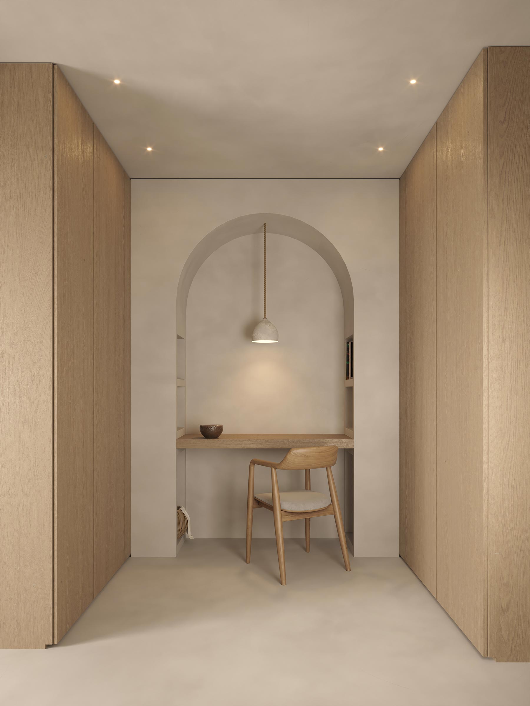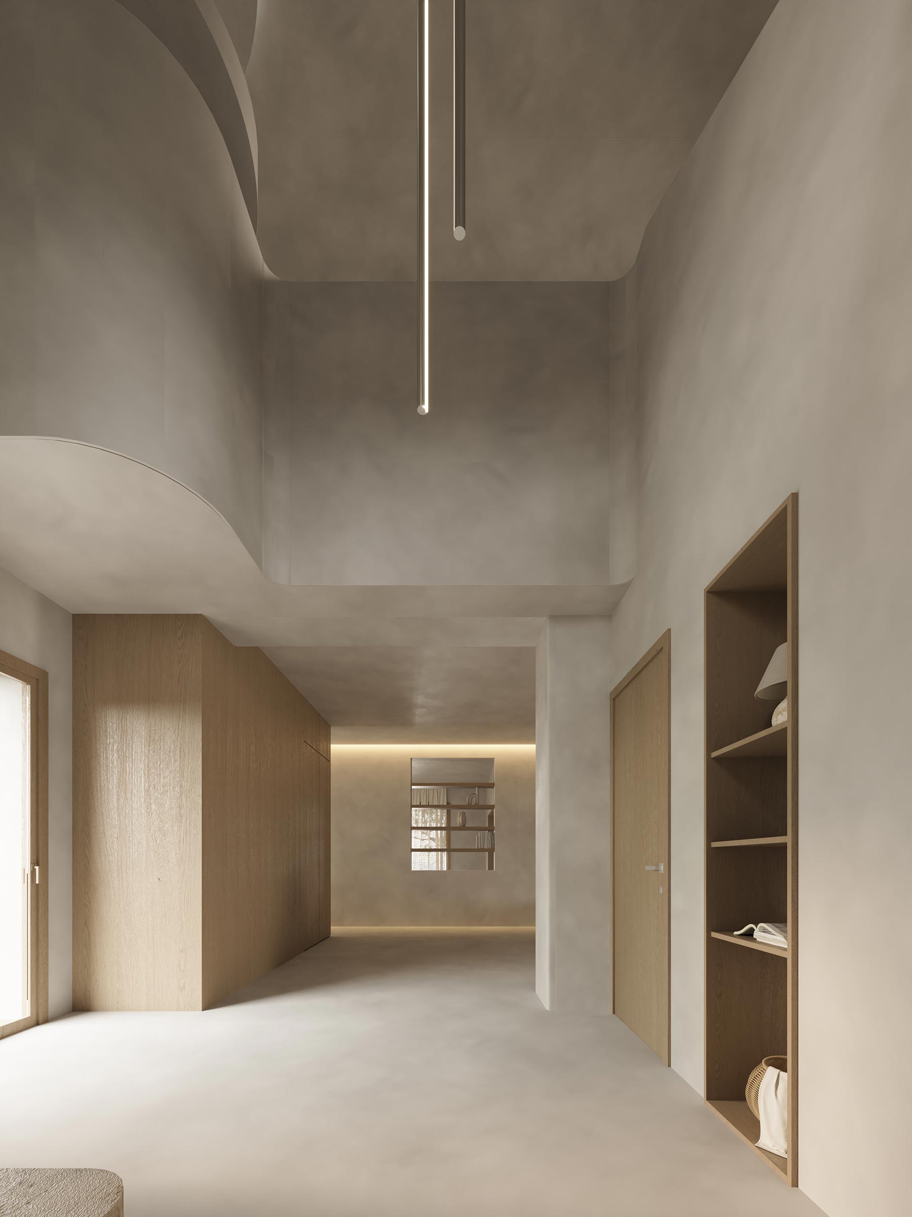 La vivienda actual, presenta un diseño muy cuidado, con detalles en todas las estancias, esquinas redondeadas, gran presencia de arcos y uso de materiales naturales. El proyecto plantea reinterpretar el estilo de esta casa, adecuándolo al momento actual, pero sin perder las referencias principales de la vivienda original. De esta manera, se plantea una reforma que hace referencia a la curva en cada una de las estancias, reinterpretándola en las paredes o en el falso techo.