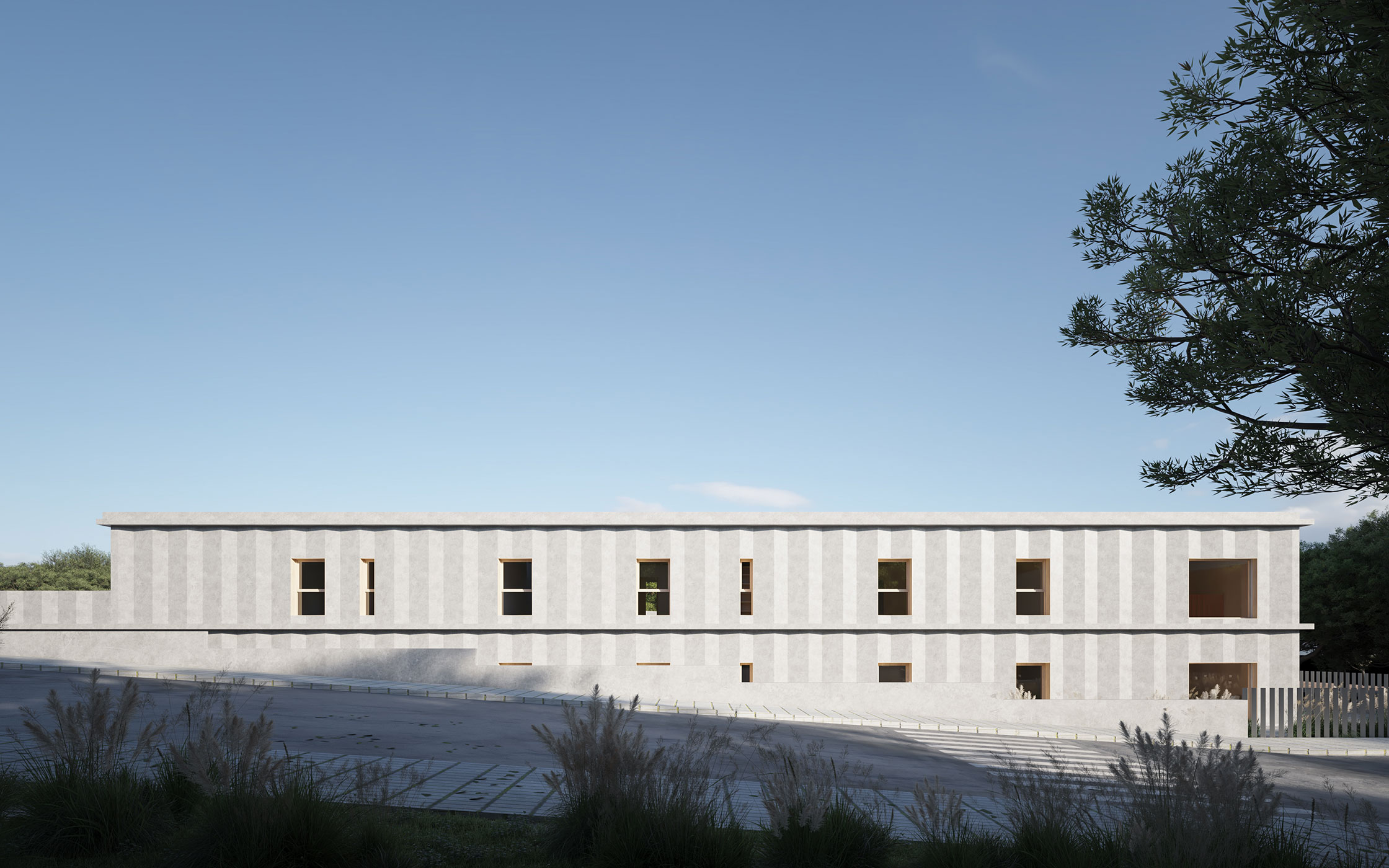 La estructura del edificio se convierte en fachada y en la imagen definitoria del proyecto. El objeto del proyecto es el desarrollo de un edificio de nueva planta destinado a Centro de Formación Profesional, Empleo y Emprendimiento en el municipio de Alfaz del Pi.